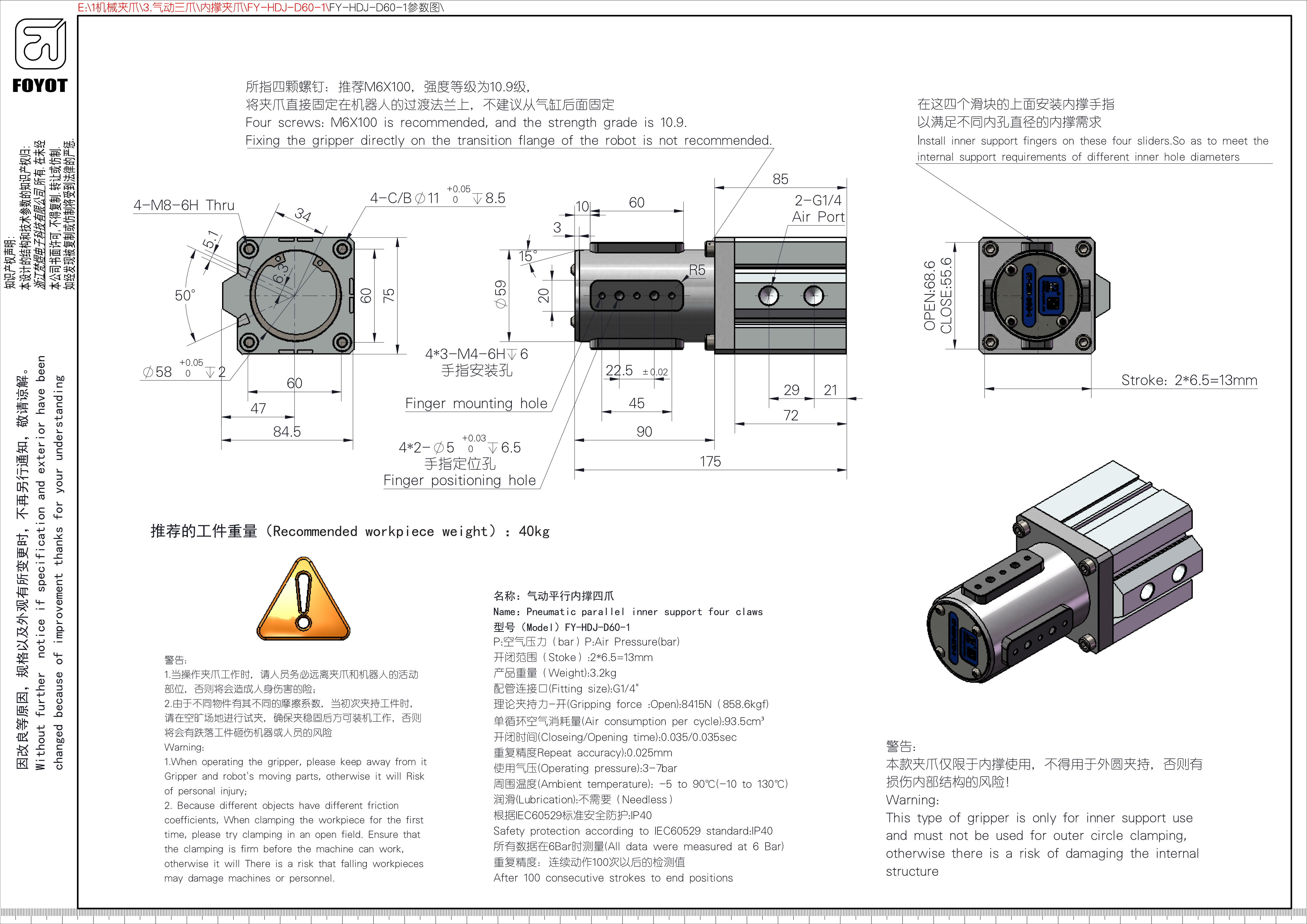 名稱:氣動平行內撐四爪