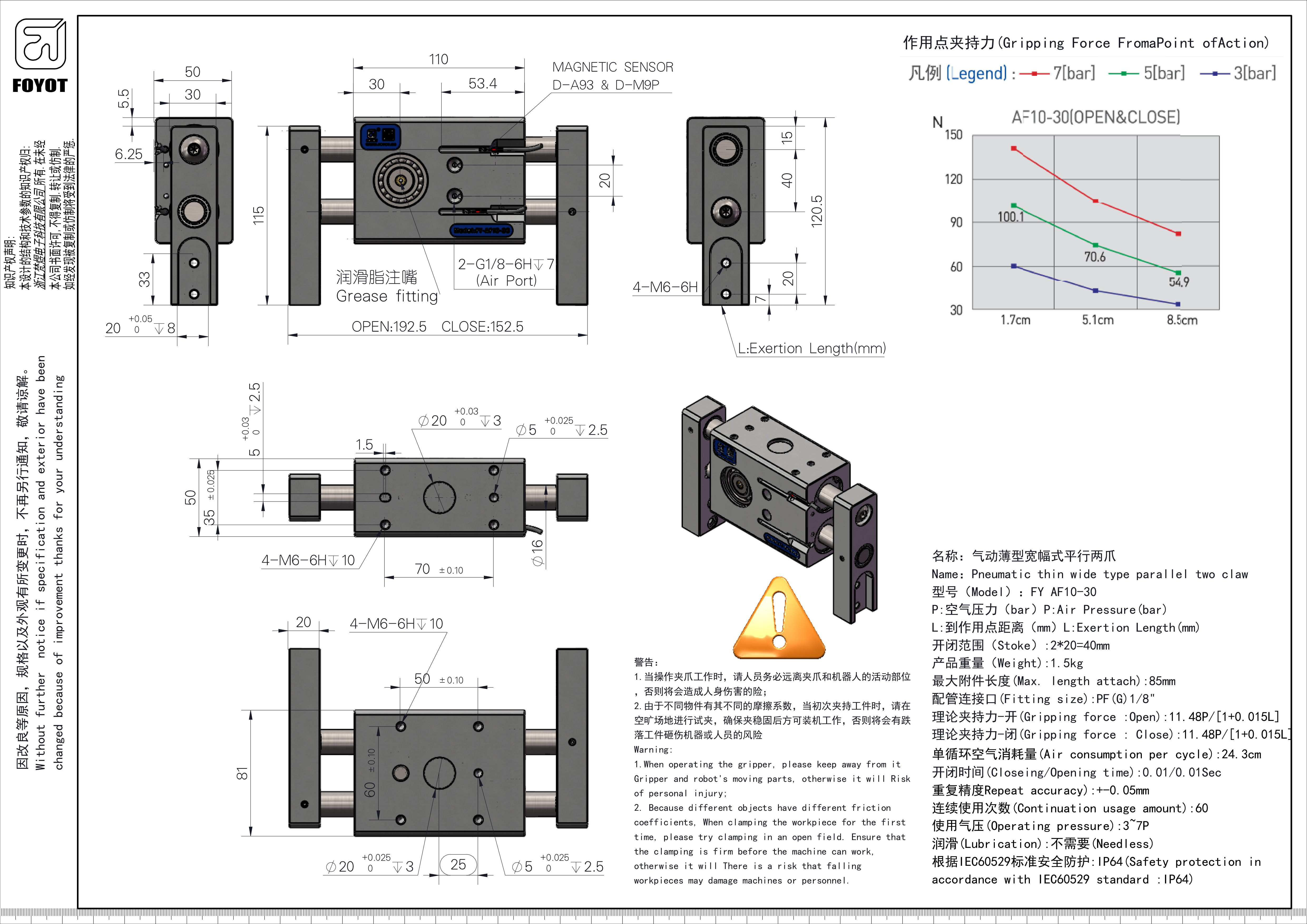 理論夾持力-開(Gripping force:0pen):11.48P/[1+0.015L]